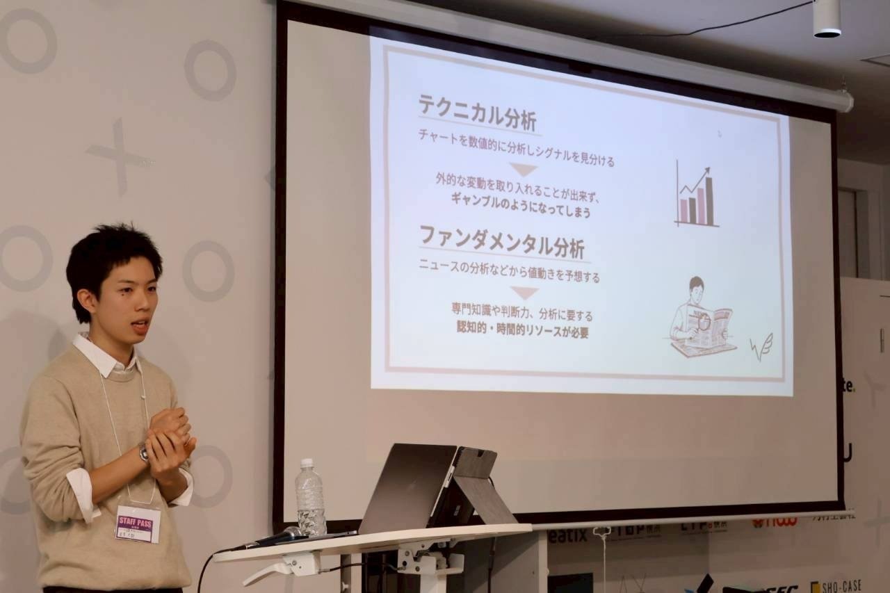 リアルタイムで市場予測を提供し、APIで自動売買にも対応 - 発表の様子